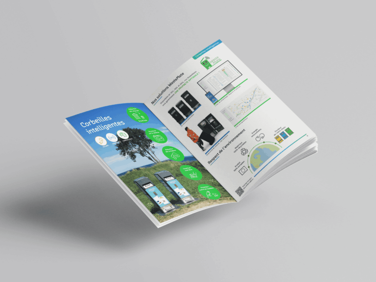 Réalisations de visuels, d’une brochure, d’un dépliant et d’un PowerPoint pour le salon Pollutec.