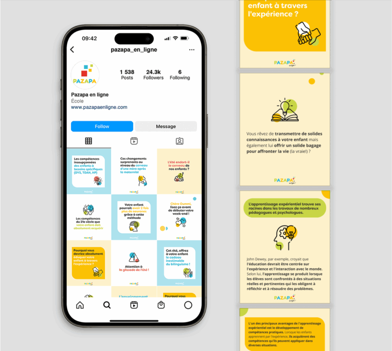 • Création de post et réels Instagram et pour leurs entreprises : Pazapa en ligne, Pazapa maison d’édition, Speak&Moov et IFEME